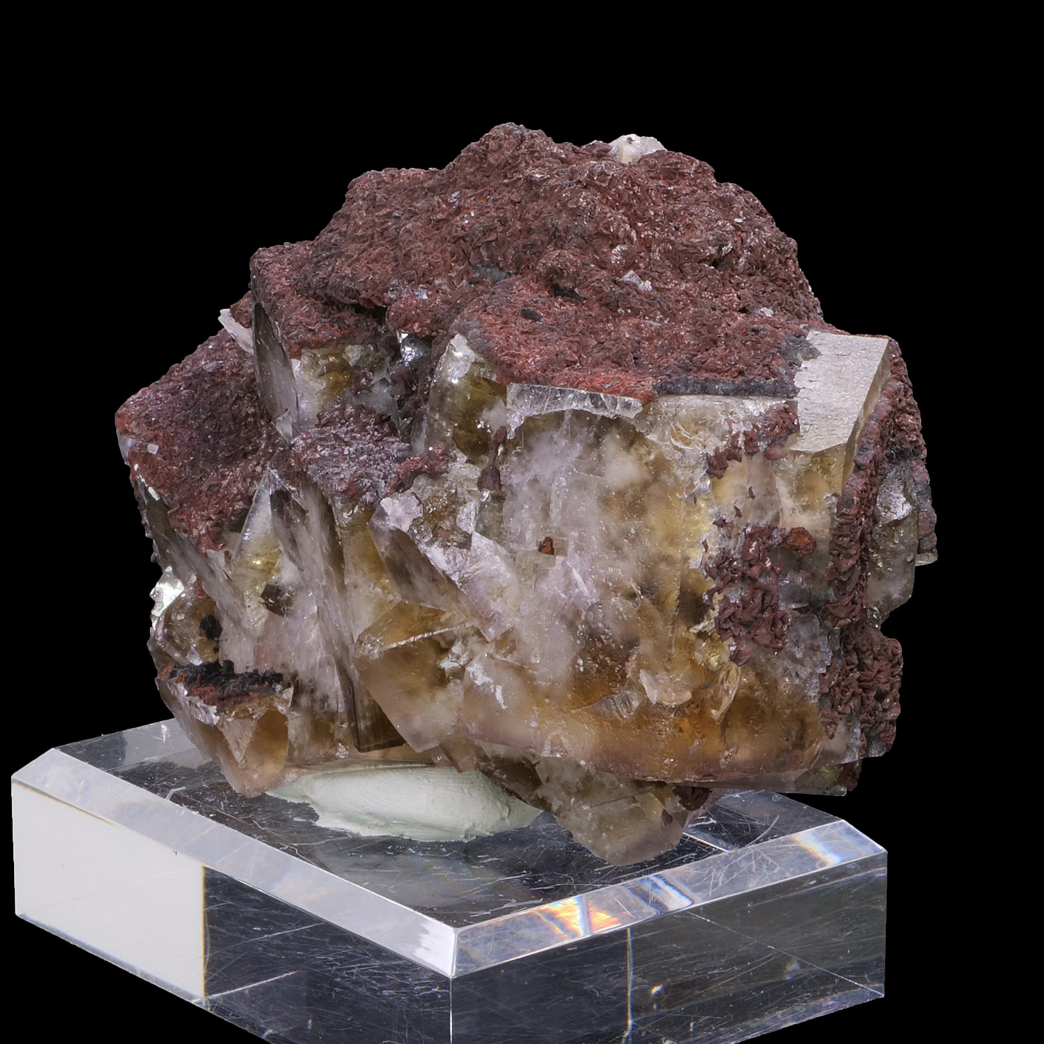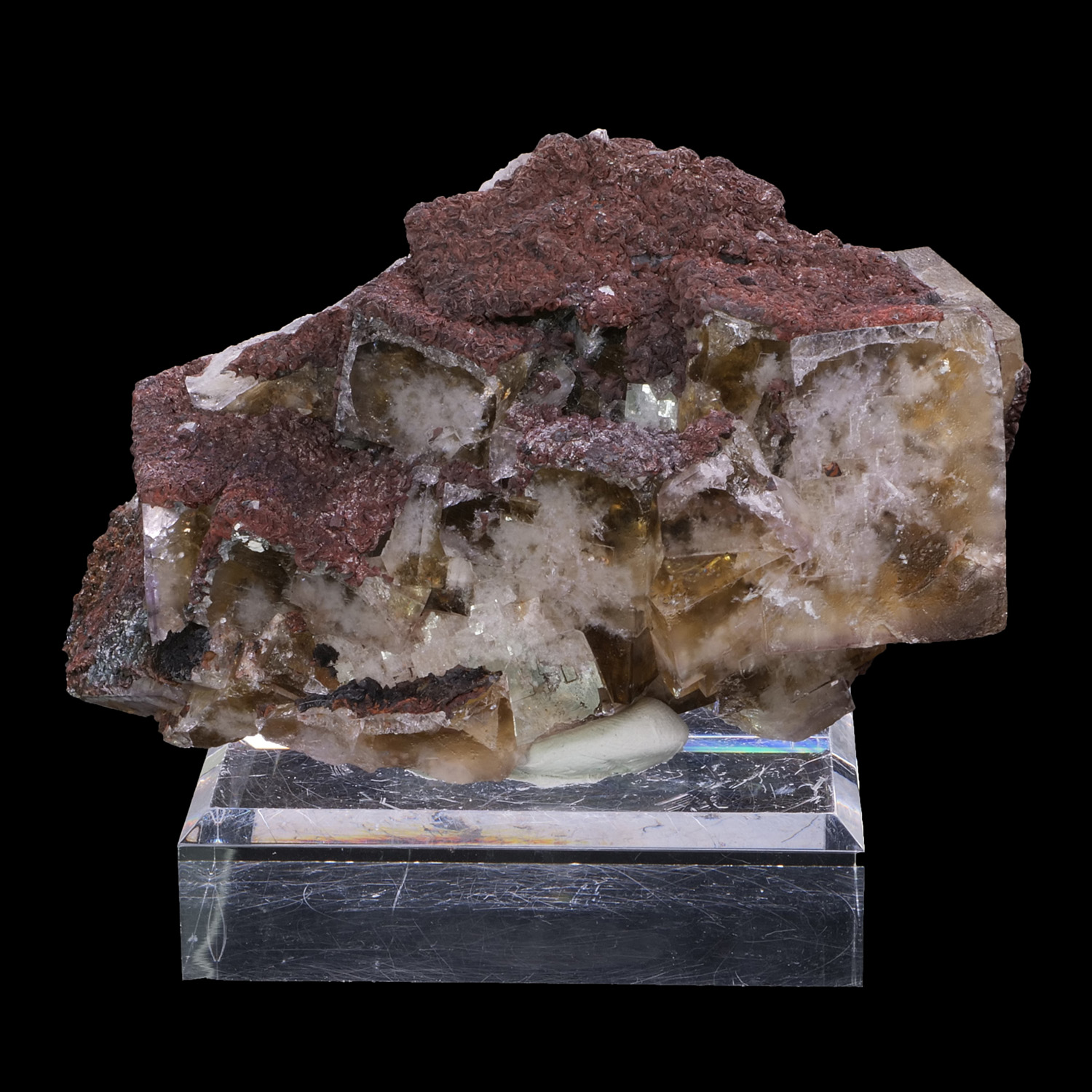 Very beautiful specimen of English yellow fluorite with the typical frosted appearance of the locality. The edges of the cubes are well defined and sharp. Association with Siderite on the top of the cubes. Beautiful reaction to UV.