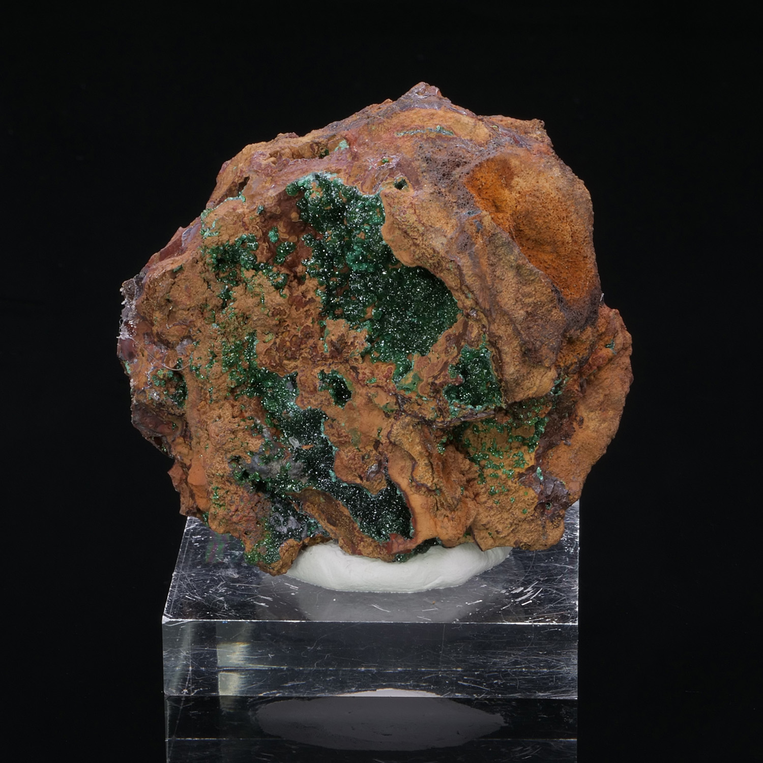 Rare intense dark green and glossy Cuproadamite crystals. The crystals are superbly formed and contrast with their matrix. This specimen comes from the Hilarion mine in Greece.