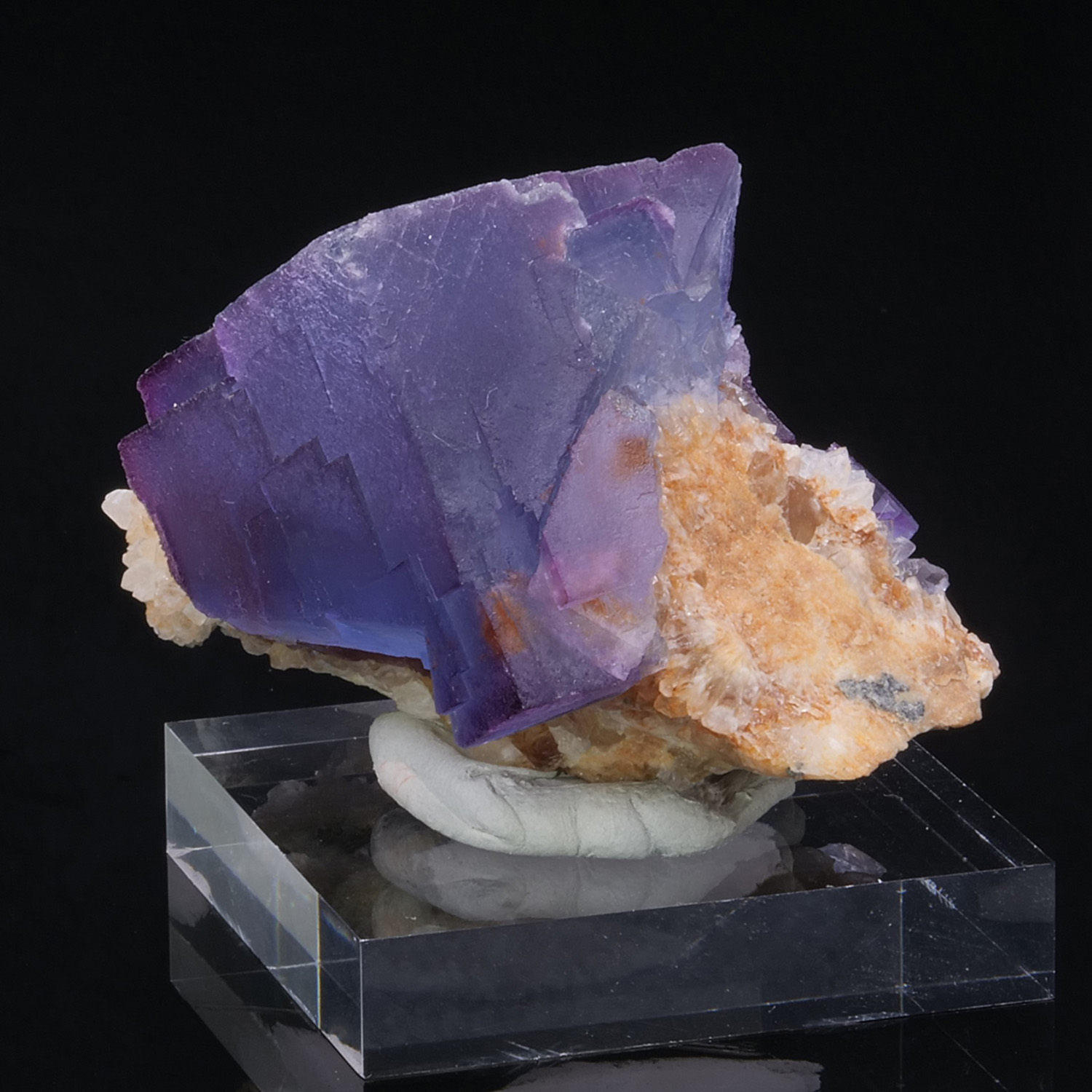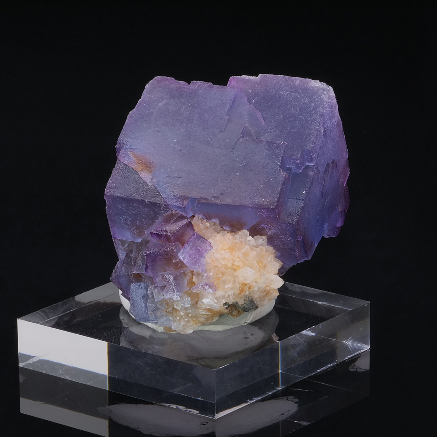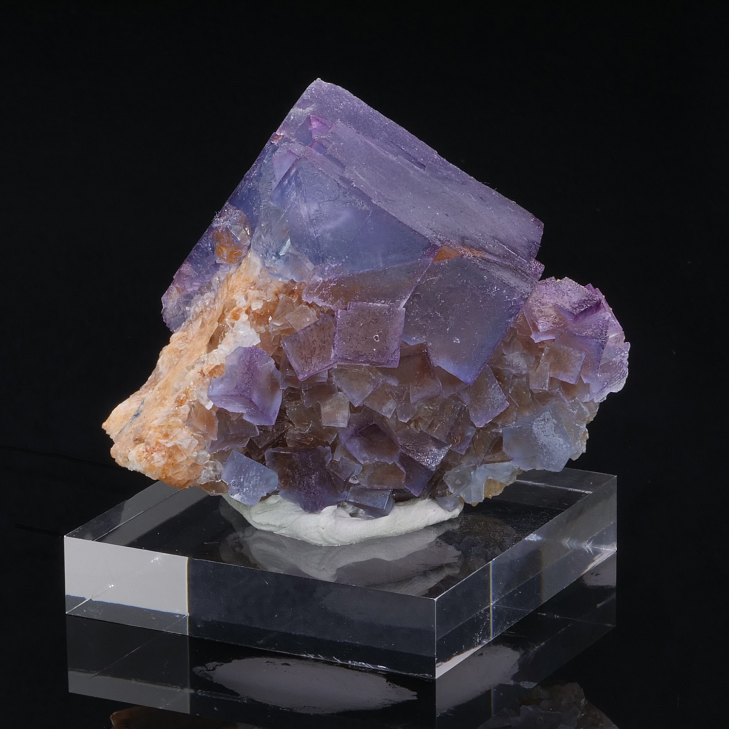 Blue fluorite cubes with purple edges on the matrix, from Bingham in the United States. The color of the cubes is fantastic, especially in backlighting. Blue and purple are well distinguished, zoned, and incredible in terms of intensity.