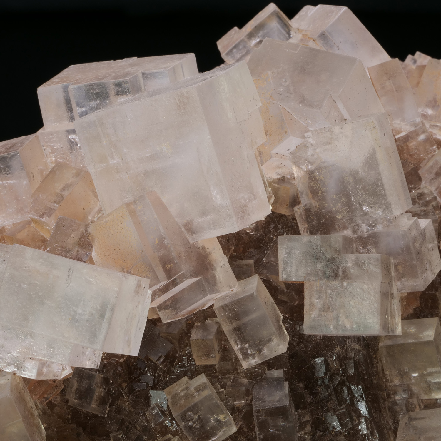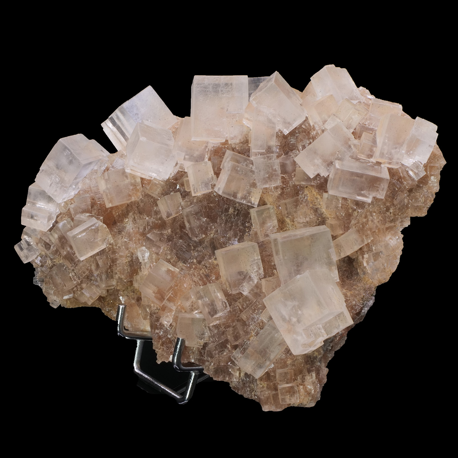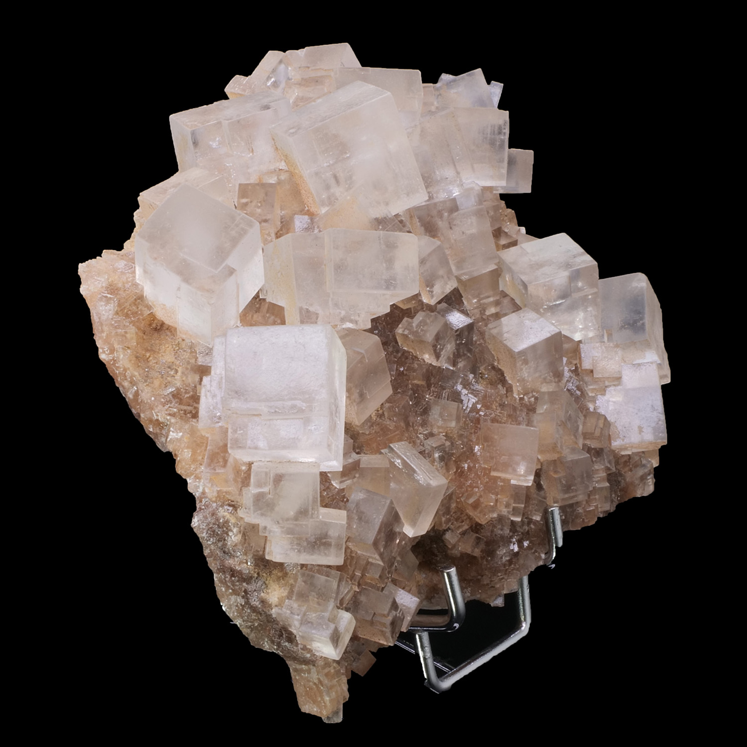 Superb crystals of Halite, or rock salt, with well-formed crystals, sharp edges and completely translucent, on massive Halite matrix. This specimen comes from Jdiriya in Morocco. Very good quality for this Halite with gem crystals.