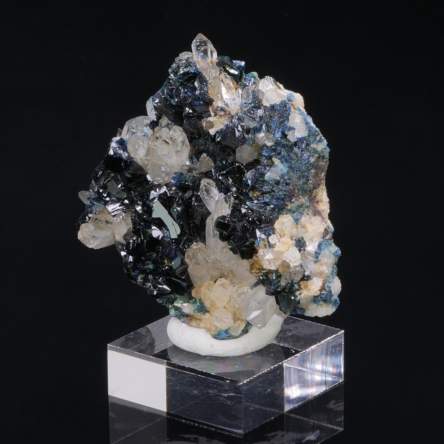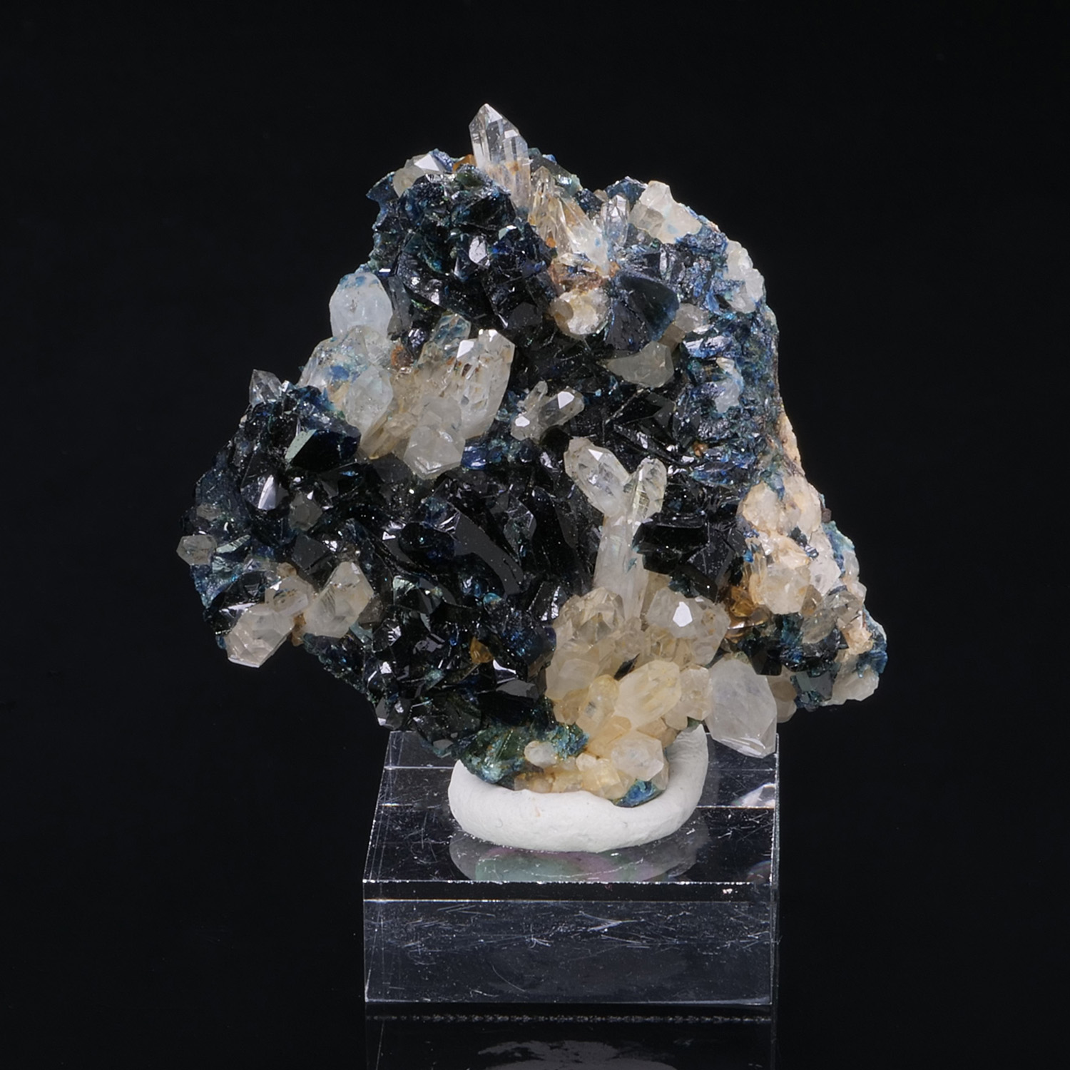 Beautiful size for these intense and shiny royal blue Lazulite crystals combined with Quartz crystals that bring even more brilliance to the piece. Lazulite from Rapid Creek in Canada.