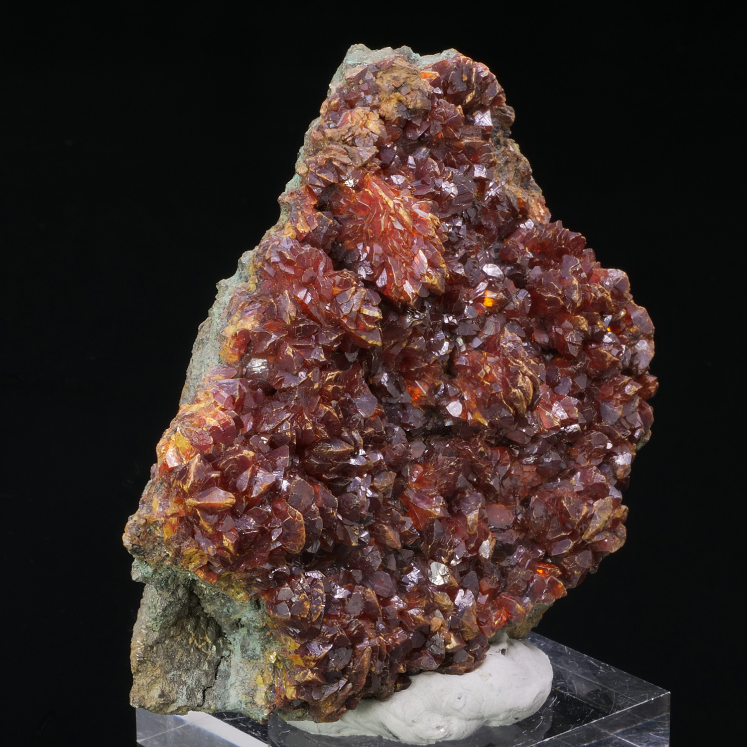 Plate covered with Orpiment crystals with perfectly formed and glossy crystals. Specimen from the Quiruvilca mine in Peru.