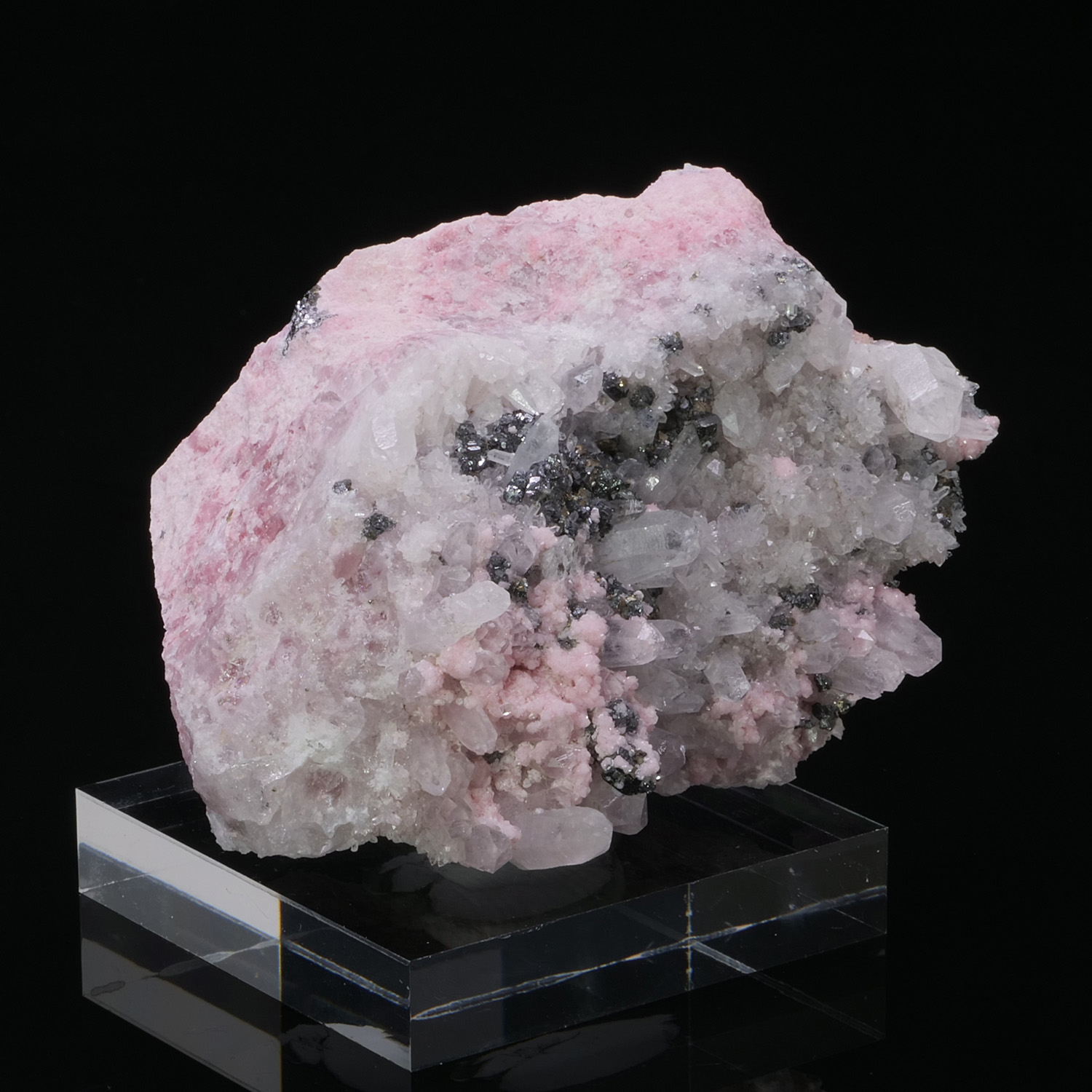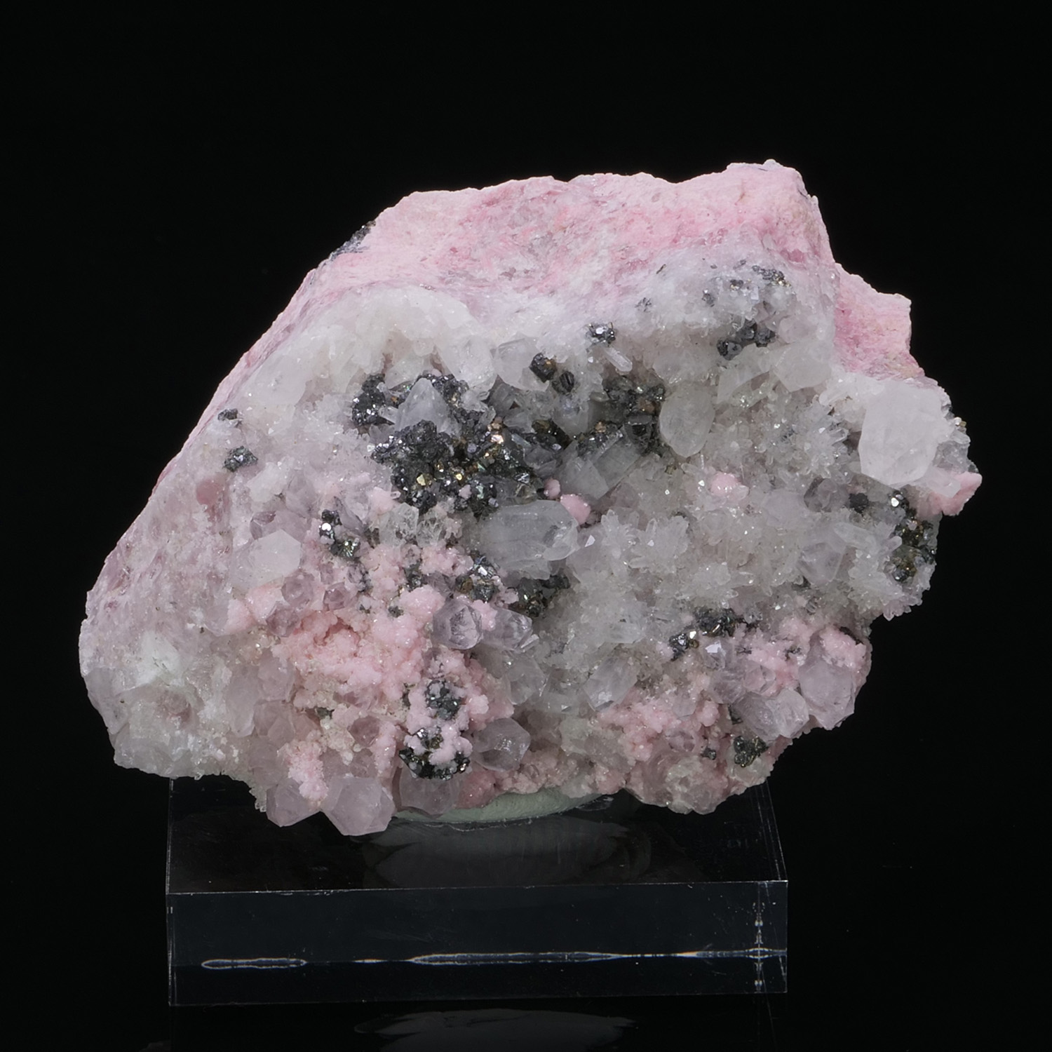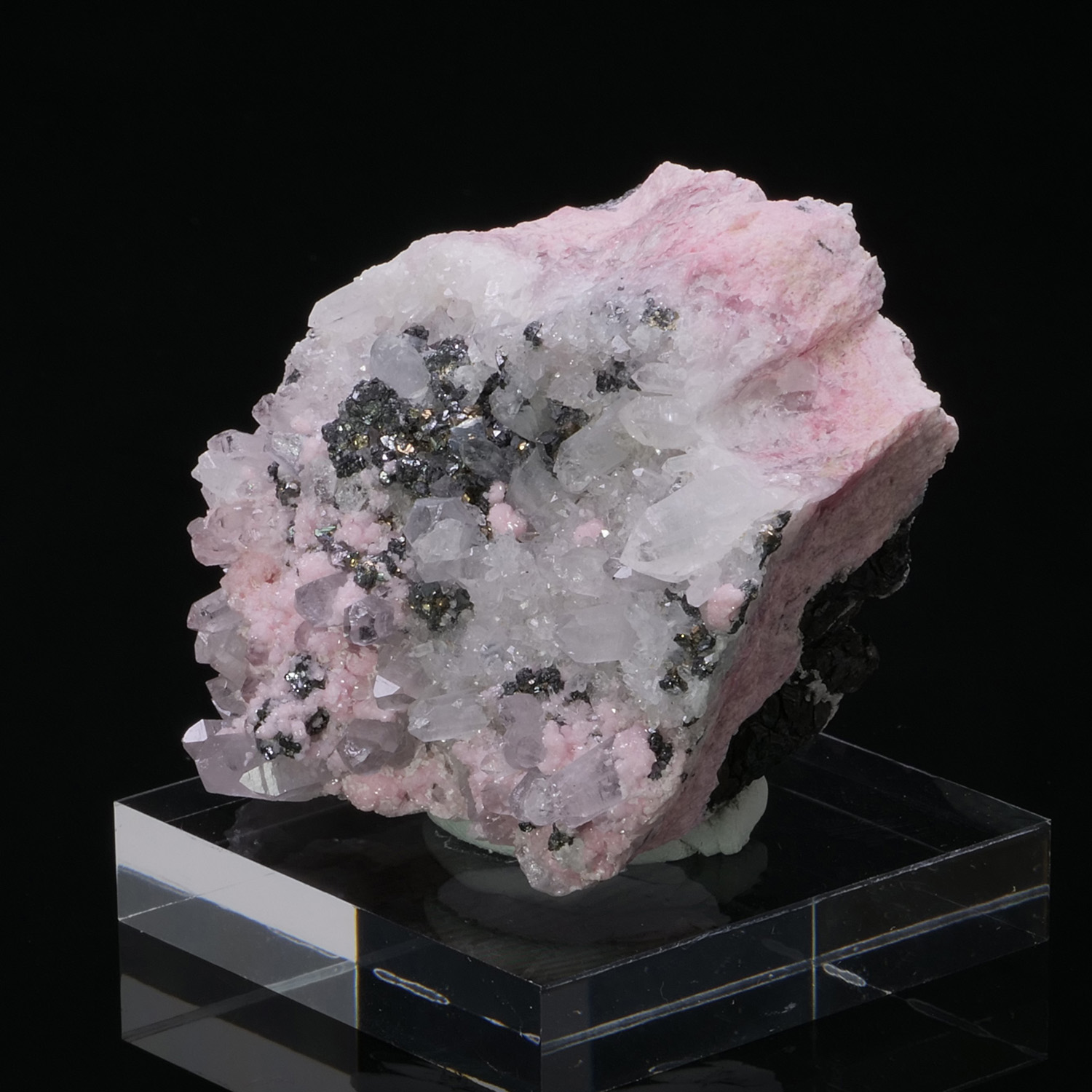 Rhodochrosite crystals associated with Specalrite and Quartz from the Austria Duvas mine in Peru.