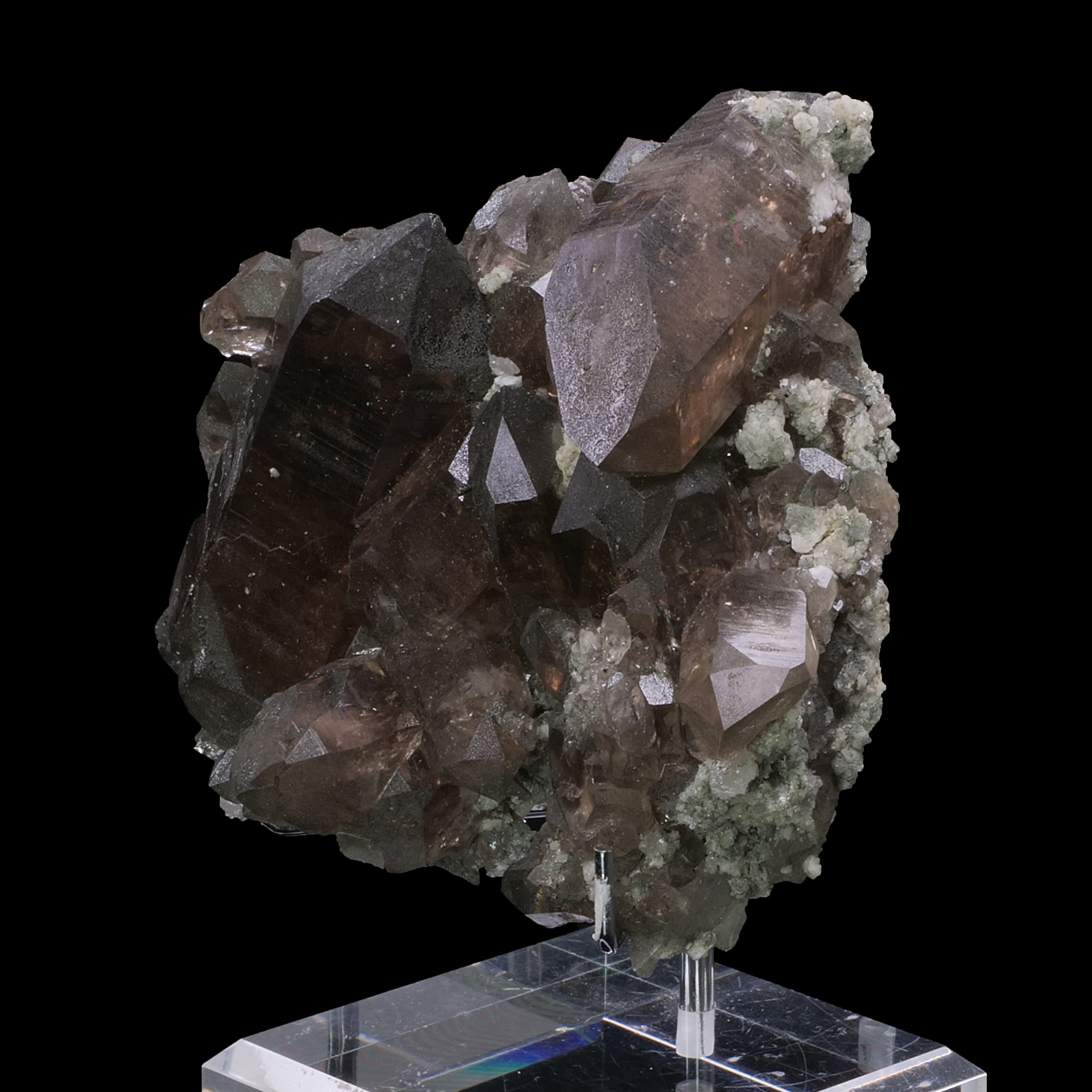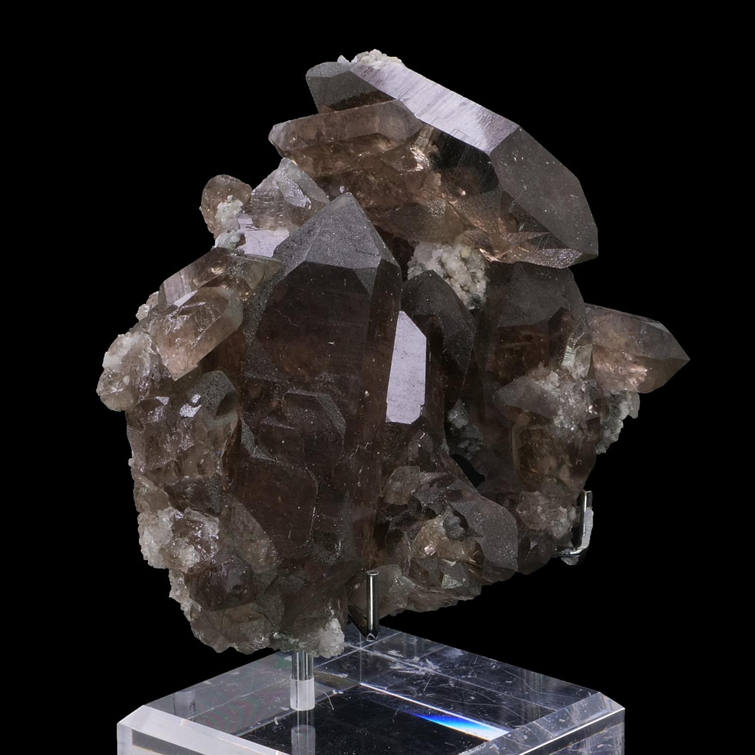 Group of finished and biterminated smoked quartz with a well-pronounced color and translucent at the same time. Specimen from the Argentiere glacier, Mont-Blanc, France.