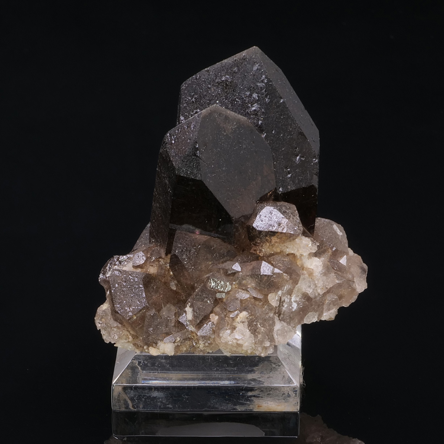Very dark and stocky smoky quartz from the Rochassiers in Mont-Blanc, France.