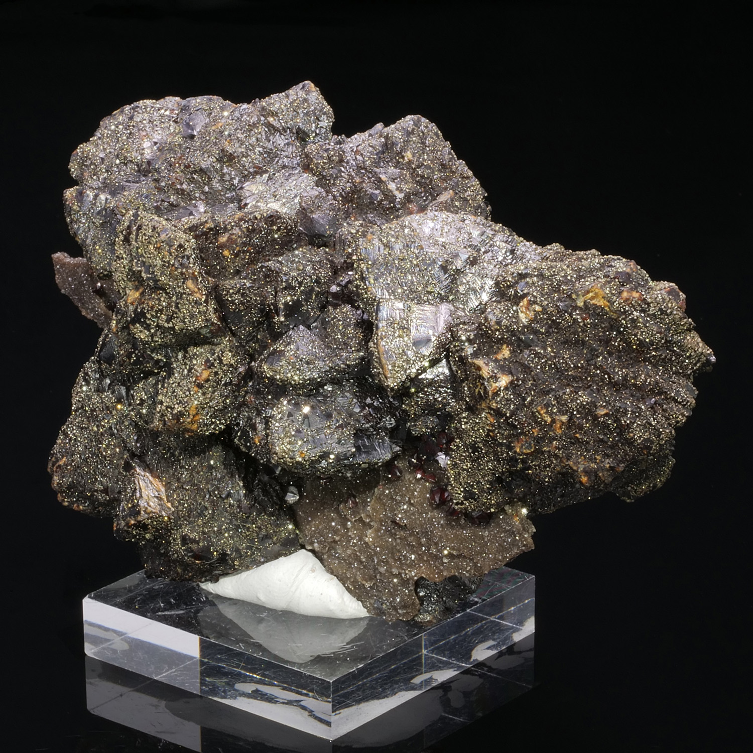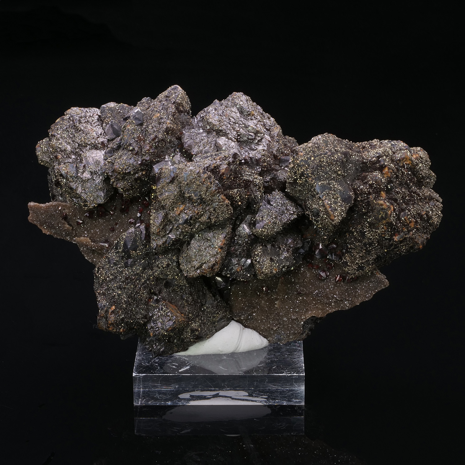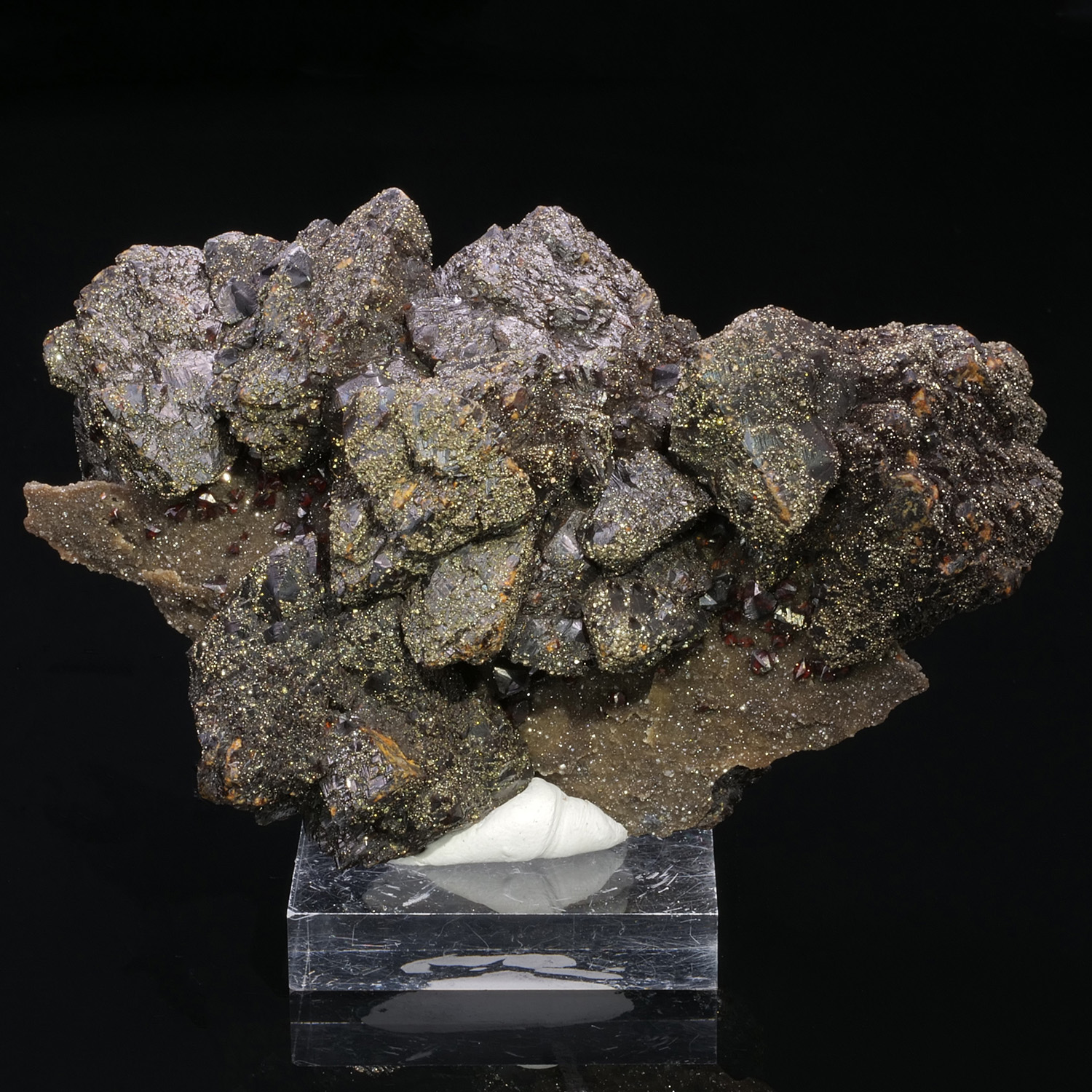 Remarkable specimen with two generations of Sphalerite that are formed on both sides of a Silex matrix. This training is typical of Tri-State in the United States. The largest crystals, very dark, are the first generation, the very red gems, Ruby Jack, are the second. The two generations are present on either side of the thin layer of flint, this is clearly visible in the video. Ex collection Kock in Belgium.